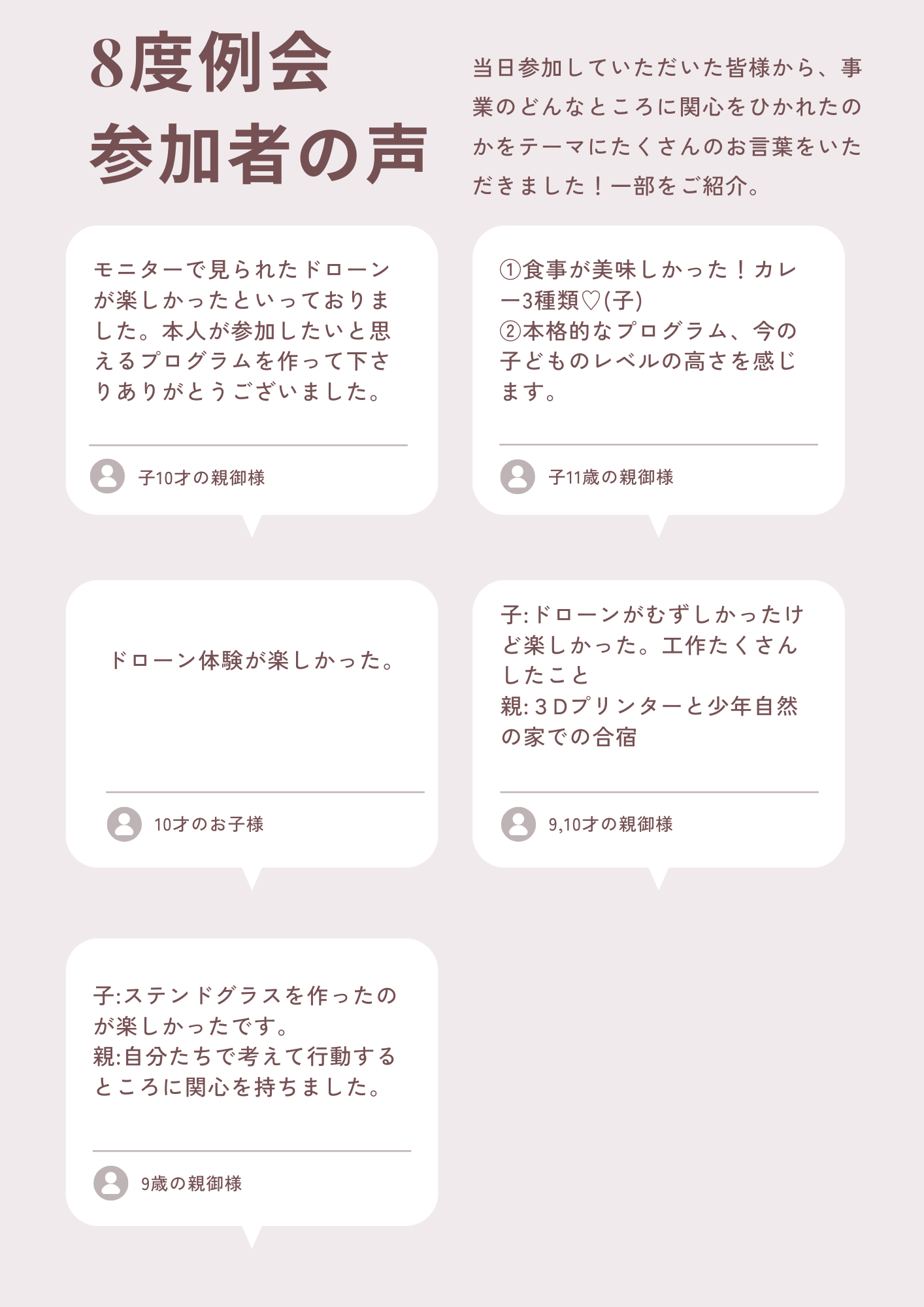 参加してくださった子どもたちや保護者の皆さま、共催いただいた北名古屋青年会議所の皆さま、そして運営に携わってくださったメンバーの協力に心より感謝申し上げます。未来を担う子どもたちが本事業を通して大きな成長の一歩を踏み出せたことを願っております。ありがとうございました!